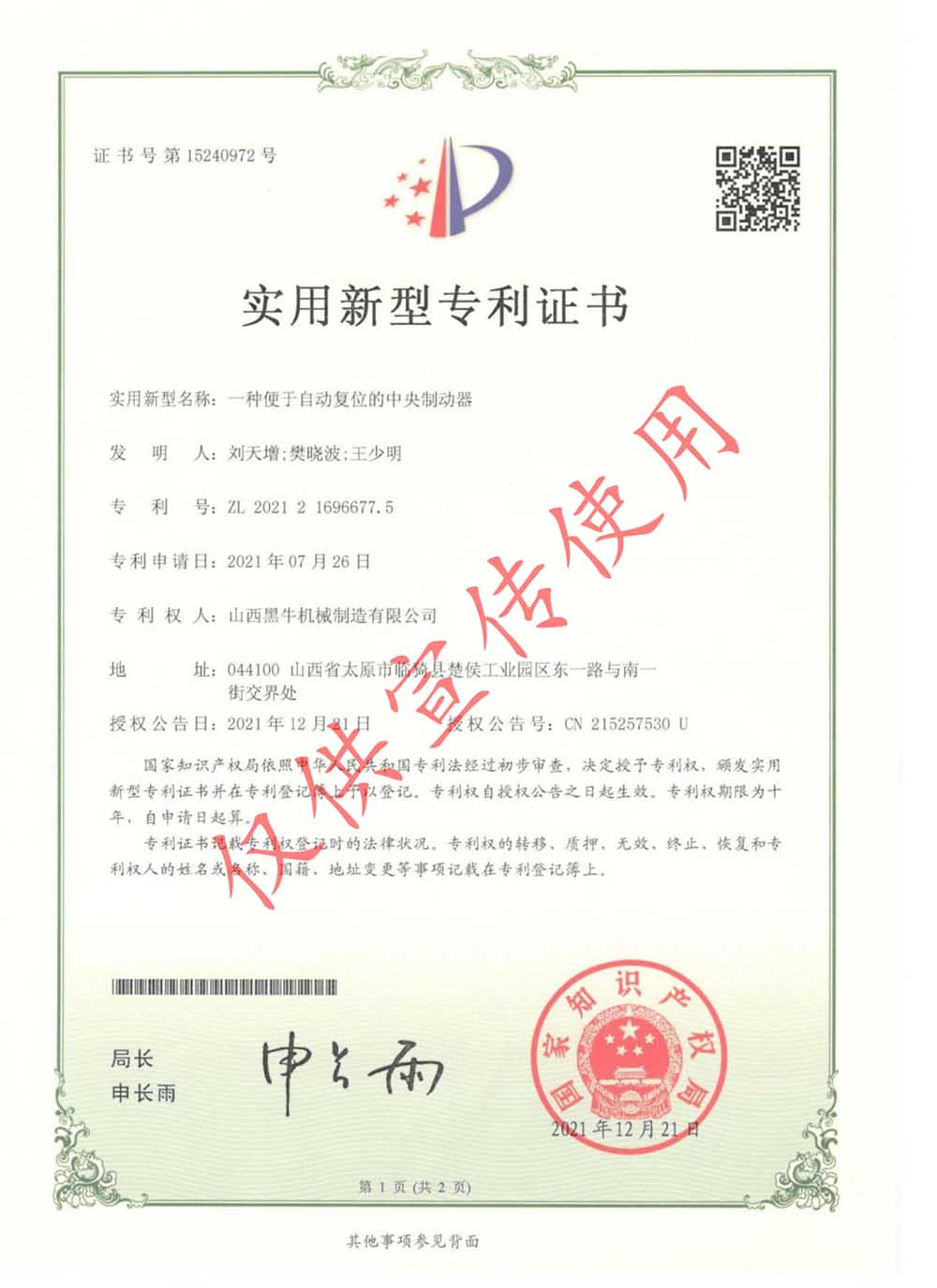資質(zhì)證書 >實(shí)用型專利證書>實(shí)用型專利證書