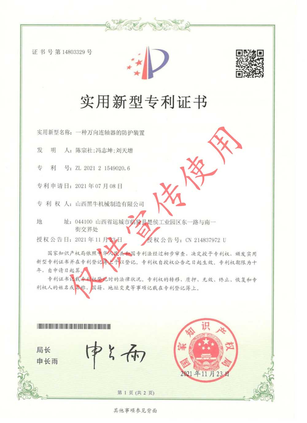 資質(zhì)證書 >實(shí)用型專利證書>實(shí)用型專利證書